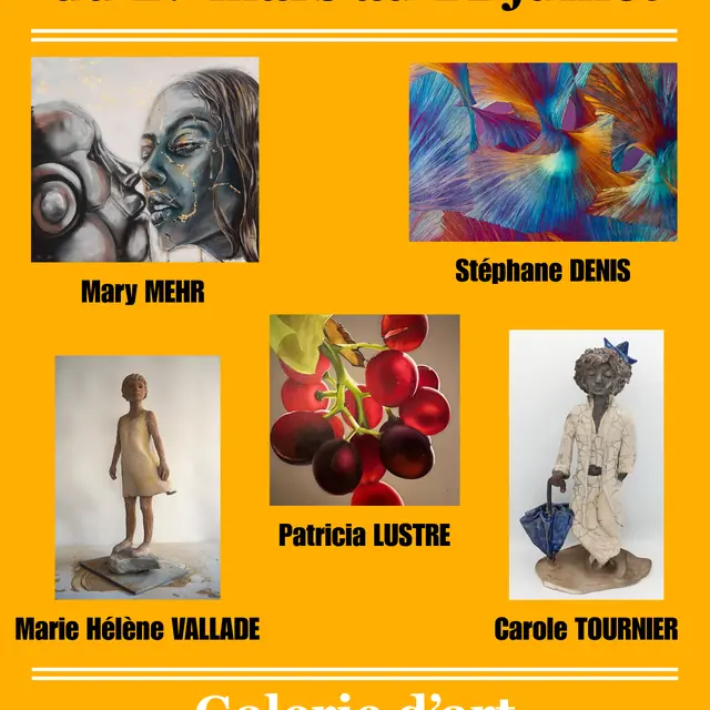 Plongez dans un bain de sérénité avec l'univers étrange des photographies de Stéphane DENIS, puis immergez vous dans la douceur des portraits de l'artiste peintre Mary MEHR. Succombez aux délicieuses grappes de raisin lumineuses de Patricia LUSTRE, tout en vous baladant au milieu des personnages insouciants et paisibles des céramistes Carole TOURNIER et Marie-Hélène VALLADE.